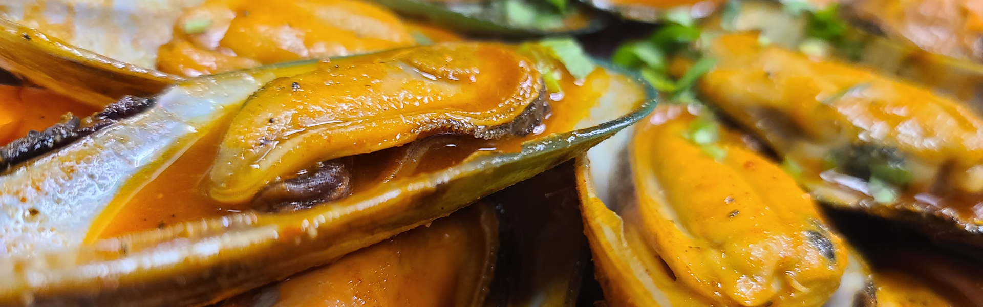 shrimp, octopus, oysters with a mild butter garlic sauce